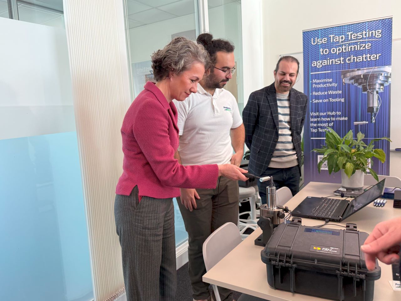 The visit included a demonstration of the company’s innovative tap testing process, which is used to optimise machining operations and eliminate costly inefficiencies. Ms. Champion also engaged with the Productive Machines team to discuss how their technology is helping UK manufacturers increase productivity, reduce waste, and bring manufacturing back to the UK through reshoring initiatives.